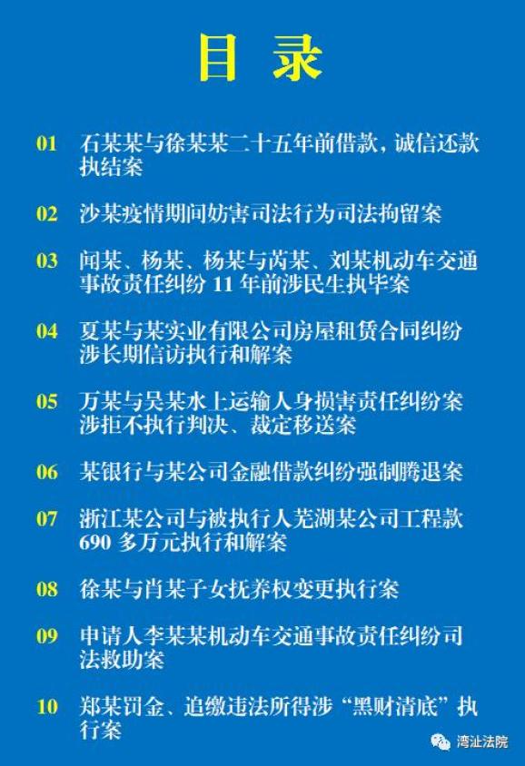 执行事关公平正义“最后一公里”,事关人民群众对司法的信任感与满意度。经湾沚法院收集、整理出近五年来湾沚法院执行类十大典型案例,现予以发布。这些案例涵盖顺利执结涉黑恶犯罪刑事财产刑、优化金融环境、服务民营企业、护航未成年人健康成长等领域,体现了湾沚法院精准发力,集中攻坚,着力破解人民群众在执行领域的“急难愁盼”问题,不断增强人民群众的获得感和幸福感。